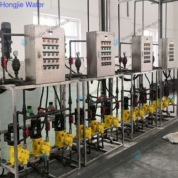 廃水 → 収集タンク → 薬液注入 → 反応タンク → 沈殿タンク → 薬液注入 → 砂ろ過 → 活性炭ろ過 → 精密ろ過 → ブースターポンプ → 限外ろ過 (UF) → UF水タンク → ブースターポンプ → 薬液注入 → 精密ろ過 → 高圧ポンプ → 逆浸透 (RO) → 純水タンク → 水使用ポイント