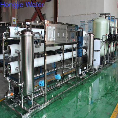 Processo:Raw water tank(Buyer supply) → raw water pump → Quartz sand filter → Activated carbon filter → Water softener /chemical dosing system(optional) → security filter → 1st high pressure pump→1st reverse osmosis system→2nd high pressure pump→2nd reverse osmosis system→ pure water tank(Buyer supply) - water supply point