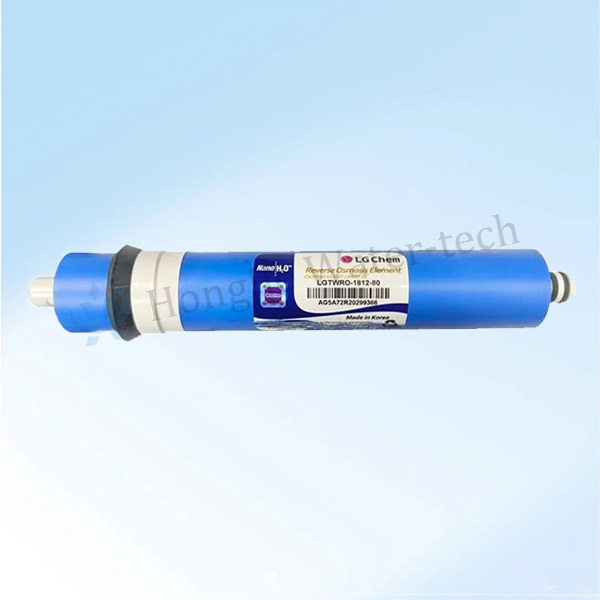 Model 1812-80G is a domestic reverse osmosis (RO) membrane element designed with a two-membrane-leaf structure and 11 turns, ensuring efficient water filtration and stable performance. It provides a rated permeate flow of 80 gallons per day (GPD) and achieves a desalination (salt rejection) rate of up to 97%.