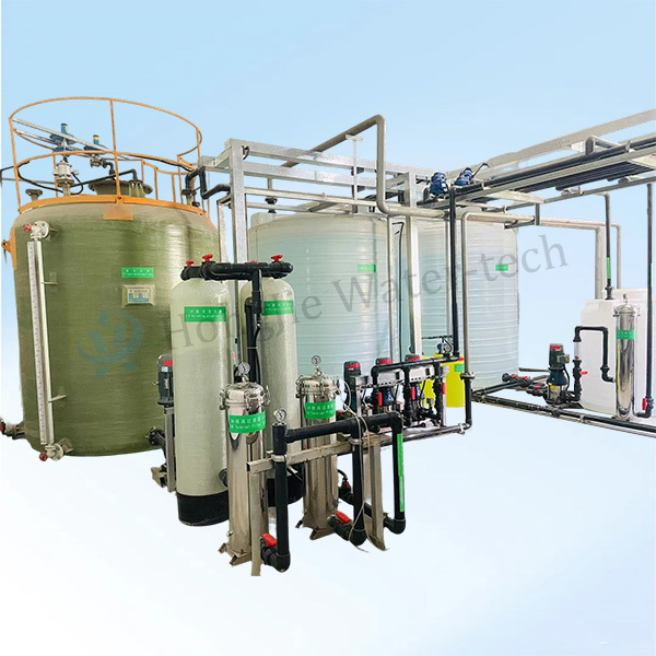 This configuration ensures efficient removal of suspended solids, organic matter, hardness, salts, and microorganisms, producing high-purity water that meets industrial-grade pure water standards.